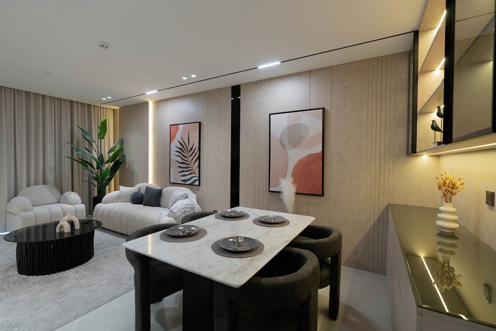 يتميز مشروع ” توليب أويسيس إكس ريزيدنسز” بتصميمه المعماري العصري الذي يضم 16 طابقًا، حيث تم توزيع الوحدات بأسلوب يحقق أقصى استفادة من المساحات، ويراعي متطلبات العائلات والأفراد الباحثين عن أسلوب حياة متوازن يجمع بين الراحة والفخامة العملية. يوفر المشروع شققًا بغرفة نوم واحدة وأخرى بغرفتي نوم، تم تصميمها بعناية لتضيف أجواءً راقية ولمسات فاخرة باستخدام خامات مميزة مثل بلاط Armani Silver وتجهيزات غرافيت مصقولة وخشب داكن فاخر، إلى جانب أسطح طاولات حجرية Petra Slate، ما يضمن تجربة سكنية استثنائية تعكس هوية المشروع وجودته العالية.